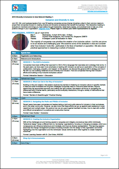 The first DIAN meeting for 2019 will take place on 10-11 April in Singapore. In this member-only, two-day event, we will examine what it takes to build an inclusive workplace through facilitated discussions and sharing from member companies as well as expert guest speakers.