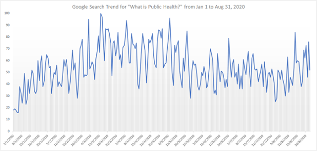Having good physical and mental health, which many people might have taken for granted before the pandemic, is now under the spotlight because of the spread of COVID-19. Even more so, the buzzword of 2020, “public health”, has never garnered so much attention. A Google search trend for the phrase “What is Public Health?” between the start of 2020 to 31 August of the same year, with 100 as peak popularity, illustrates a surge of interest in understanding what public health is (see figure 1).